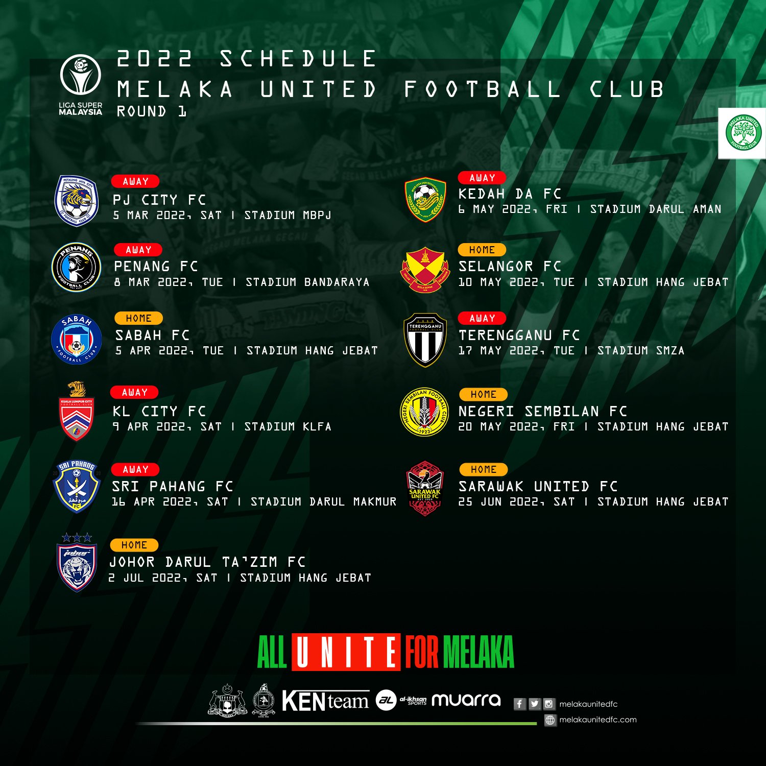 Melaka United Fc On Twitter Berikut Jadual Perlawanan Pusingan Pertama Liga Super Malaysia 2022 Membabitkan Melaka United Fc Fixtures Ligasuper2022 Melakaunitedfc2022 Alluniteformelaka Https T Co Xb8ivypz8v Twitter